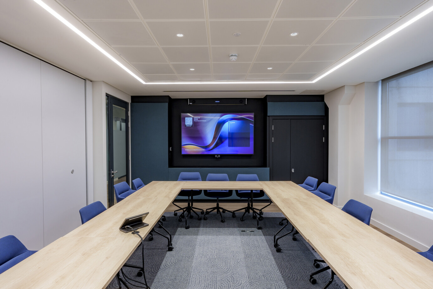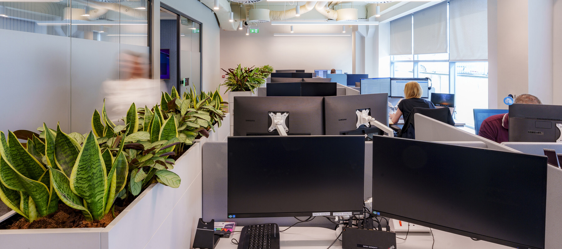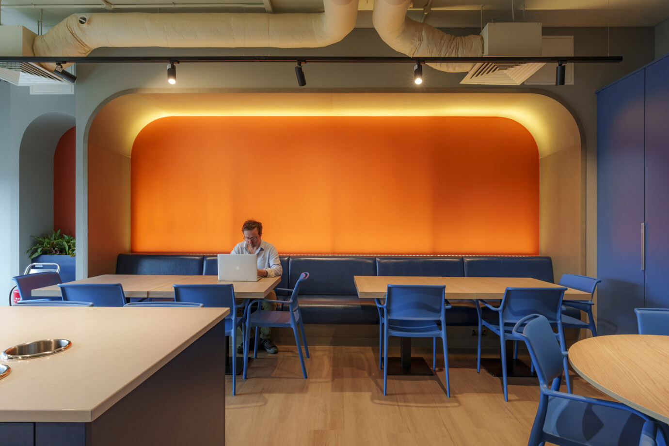 The fit-out integrates sustainable strategies, from material reuse to responsible specification, while promoting comfort, flexibility, and wellbeing. A central collaboration strip features phone booths and huddle spaces, complemented by openable windows and abundant natural daylight. Workstations overlook high-quality landscaping, with greenery incorporated throughout. The layout offers focus rooms, a fully equipped canteen, and diverse informal seating, supporting varied work styles and empowering users through adaptable, choice-driven environments.